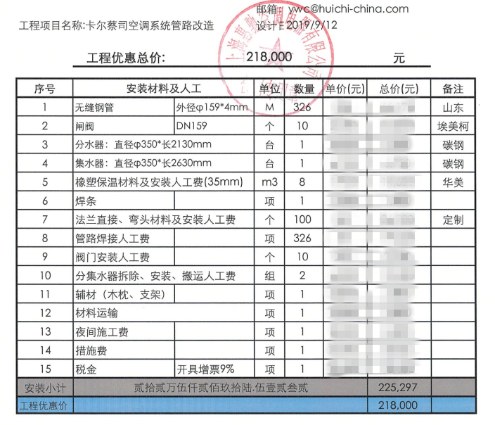 空調(diào)系統(tǒng)管道改造報(bào)價(jià)單